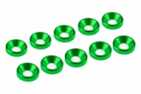 Ultimate Racing 3 mm hliníkové konické podložky zelené, 10 ks.