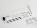 RC komplet obsahuje: výlisky trupu, křídla, ocasních ploch a motorových gondol z pěnového polystyrenu, vakuově lisovaný plastový kryt kabiny, dvě nainstalovaná dmychadla se střídavými motory (s rotačním pláštěm) a elektronickými regulátory otáček, sadu elektricky ovládaného výsuvného podvozku s gumovými koly, sadu drobných dílů a příslušenství, osm serv, tubu lepidla na pěnový polystyren, arch mokrých obtisků a návod.