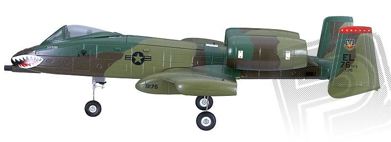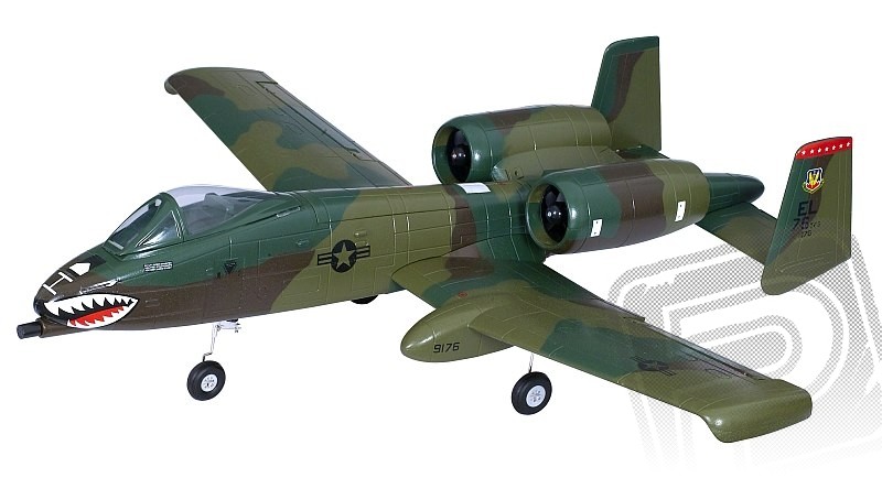 Polystyrenová ARF stavebnice polomakety bitevního letounu s 8 předinstalovanými servy, dvěma dmychadly o průměru 64mm, střídavými motory a 30A regulátory.