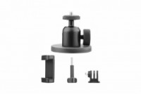 230gSize: 6.6*6.6*6.49cmWith 1/4inch crewMulti-angle adjustableWith three-prong adapter, long screw and smartphone holder