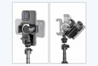 Dual Phone Holder s montážní studenou botou váží 93 g a má rozměry 107,5 × 64,2 × 31,35 mm. Šířka držáku je nastavitelná mezi 60 mm a 90 mm, což zajišťuje kompatibilitu s různými telefony. Umožňuje otočení o 360 stupňů pro flexibilní nastavení úhlu. Na spodní straně je 1/4 palcový závit pro upevnění na stativ nebo jiný montážní systém. Ideální pro simultánní natáčení nebo streamování s dvěma telefony.