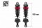 Celohliníkové olejové tlumiče pro modely 1/8 a podobné, Celková délka mezi čepy je 100mm, průměr pístku je 16mm. Sada obsahuje: tři páry pružin: měkké, střední a tvrdé; horní i spodní upevňovací materiál.