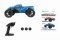 RC model monster trucku v měřítku 1:10 s pohonem všech kol 4x4, poháněný střídavým motorem vč. RC volantové soupravy 2,4 GHz, 50A regulátoru a 6kg serva. Bez pohonného akumulátoru a nabíječe. Modrá karoserie.