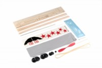 Stavebnice obsahuje: balsové laserem vyřezávané díly, balsové nosníky, vakuově lisované díly (kryt kabiny...), plastovou vrtuli s hřídelí a hlavicí, gumový svazek (soutěžní guma FAI TAN II), kola, ocelovou strunu na podvozek a další drobné díly, barevný potahový papír, aršík samolepek, stavební plán.