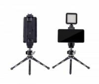 Držák na smartphone/tablet z ABS materiálu s hmotností 68 g a rozsahem svorky 65–225 mm. Vybaven 1/4" šroubem a 360° otočným cold shoe portem pro flexibilní upevnění a nastavení úhlu. Ideální pro stabilní držení zařízení při natáčení nebo streamování. Robustní a lehký design pro pohodlné a univerzální použití.