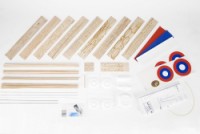 Stavebnice obsahuje: balsové laserem vyřezávané díly, balsové nosníky, vakuově lisované díly (kryt motoru, kola...), čirou plastovou fólii na větrný štítek, ocelovou strunu na podvozek a další drobné díly, barevný potahový papír, aršík samolepek, stavební plán.