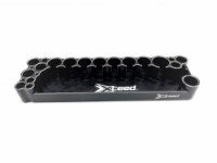 Jedná se o profesionální multifunkční stojánek na nářadí s integrovaným zásobníkem na díly. Xceed hliníkový stojánek na nářadí má několik obrobených otvorů pro nářadí a otvory o menším průměru pro uložení různých přípravků, jako jsou výstružníky karoserie, nářadí pro spojovačky, kleště, nůžky, pinzety, měřidla, lepidlo, fixy/tužky nebo jiné nástroje pro vaše RC podvozky. Integrovaná přihrádka na díly je skvělá pro držení nejrůznějších šroubů, matic, sponek pro karoserii, ale také drobného příslušenství, opěrných bloků, pájky, olejů, tuků a dalších. Tento skvěle navržený praktický stojan na nářadí vám pomůže udržet váš pracovní stůl uspořádaný, profesionální a vyniknout na něm.